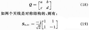 对于一个双天线系统,应该有两个正交模同时存在,去耦合网络是一个四端口网络,正交辐射矩阵可以写为: