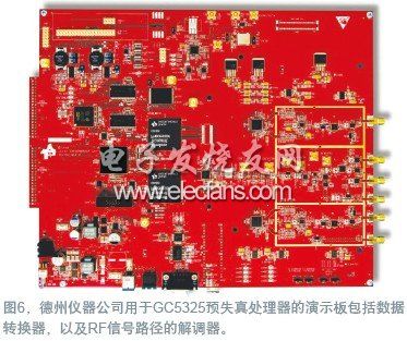 很多工程师都熟悉Altera公司的FPGA在数字领域的使用。该公司的MegaCore IP(智能产权)可完成预失真的数字部分运算(参考文献8)。Analog Devices公司与Altera公司合作,提供一种混合信号的数字预失真系统板,而德州仪器公司提供GC5325这类发射处理器器件,以降低信号波峰系数,以及抵消功放的失真(图6)。Xilinx公司为自己的Virtex-4和Virtex-5 FPGA提供一个数字预失真的参考设计。由于手机基站承载了较多的RF通道,空间就成为了一个问题。凌力尔特公司等的解决方法是将整个数字预失真电路集成为LTM9003微模块(图7)。