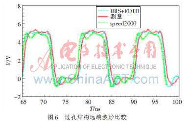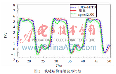 从各种结构的仿真和测量结果来看,结合有限时域插分法分析IBIS模型的方法除了输入波形造成的干扰外,无论在时域或频域上均与测量的结果十分的接近与类似,并且对各种结构中仿真的结果与Sigrity公司开发的商用信号完整性分析软件speed2000的仿真结果非常吻合。由此可以验证,结合时域有限差分法对IBIS模型进行适当地修正可以很好地提高仿真模型的准确度,可以解决单纯利用speed2000等商用软件进行仿真而出现的仿真与实际测量之间存在误差的情况。