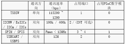 USBUART和USBFS接口都不占用PSoC的数字 / 模拟模块资源,提供了从PSoC到主机的USBFull Speed双向连接。