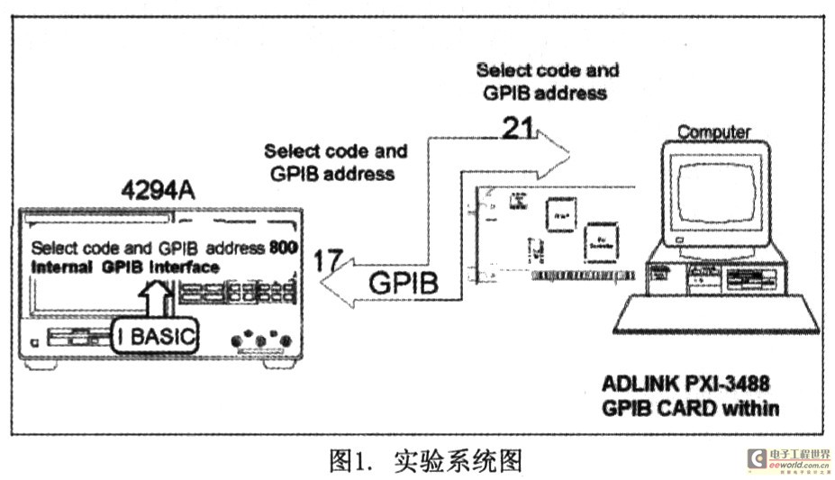 Agilent 4294A精密阻抗分析仪主要应用于测量材料的各类电阻、电抗、电容等参数。其高精度、可多次扫描和多参数设置使得其被广泛应用于各类开云棋牌官网在线客服薄膜材料、纳米材料和工程材料的特性测试。然而他在实验系统的搭建中很难被集成,其主要原因是:a.缺乏方便的储存载体;b.扫描测量需要人工进行大量反复的数据记录;c.单次扫描无法自动重复进行。但4294A内部已集成HP公司开发的IBASIC语言系统以及多个移位寄存器来进行状态储存和识别,同时配备有GPIB接口,因此可以利用PCI转接GPIB卡来使4294A同个人电脑进行数据通信及存储。