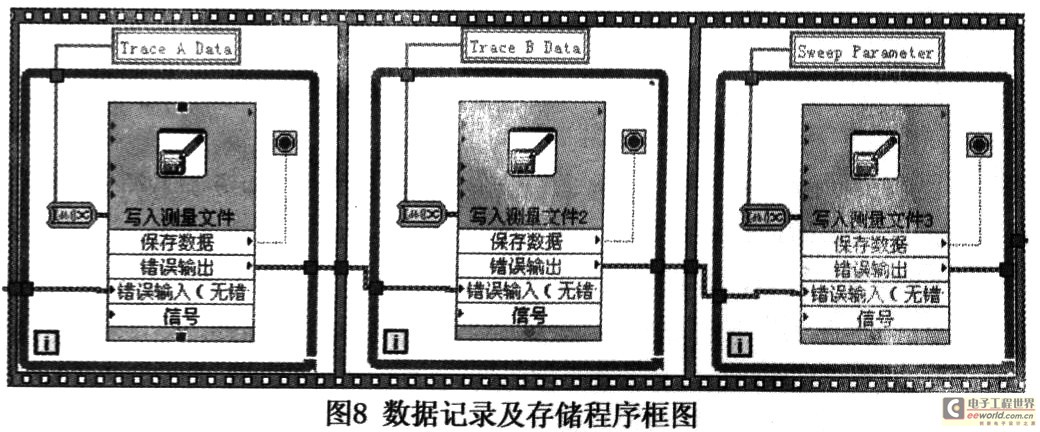 对于仪器控制部分的程序编写,主要分为以下几个部分:a.仪器参数设定部分;b.图形绘制和数据显示部分;c.数据记录及储存部分。