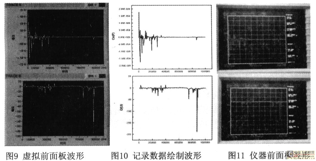 为了对实验程序进行可行性及准确度的确认,我们将虚拟前面板绘制出的图形(图9)、记录数据进行后处理所绘制的图形(图10)以及仪器本身面板所显示的图形(图11)这3者进行了对比,如图所示。