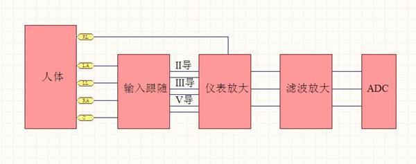ECG测量部分的方块图如下所示: