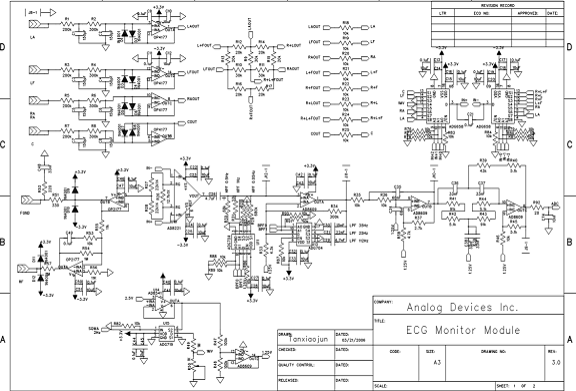 如果单独的做ECG监护仪的话,采用ADI的这个方案,无疑是比较合理的。但我们公司的产品是多参数的医疗监护仪,可以监测ECG,人体呼吸,导联脱落检测,血压,血氧等五项生理参数。