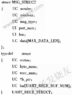 定义消息结构MSG_STRUCT和串口接收UART_RECE_STRUCT数据结构:
