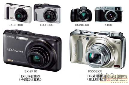 在这些厂商中率先采用的是卡西欧计算机。该公司在2010年11月上市的“HIGH SPEED EXILIM”系列数码相机机型“EX-ZR10”上,配备了采用动态可重构技术的图像处理LSI“EXILIM引擎HS”。包括该机型在内,卡西欧计算机已在“EX-ZR100”、“EXH20G”及“EX-TR100”合计四款机型上采用了动态可重构技术(图1、图2)。