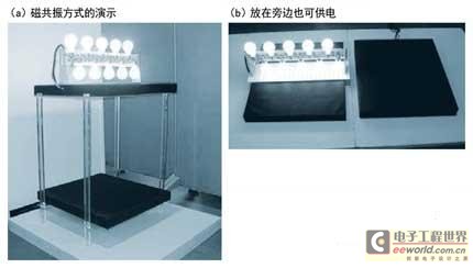 2009年演示了可向远处传输电力的系统(a)。放在旁边也可供电(b)。