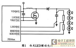 FS1610的电源输出主要用于降压转换、升压转换、白光LED驱动、低压差稳压、负升压转换和电池供电等。图I所示是用FSl610来驱动白光LED的驱动电路。