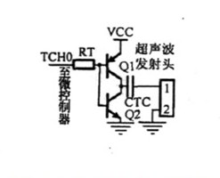 (1)超声波发射电路超声波发射电路如图3所示。当汽车驾驶员手柄转到倒车档时,测距电路开始工作,微控制器发出40kHz方波信号,经驱动电路放大后,通过探头发射出去,此时计数器开始计数。