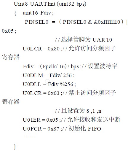 UART0初始化函数片断如下: