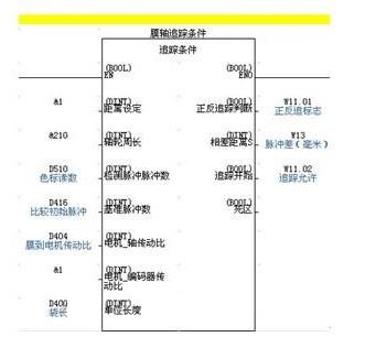 首先计算出送膜轴运行给定的袋长需要的脉冲数,然后与虚轴的脉冲数进行线性对应,随时读取虚轴的脉冲值,然后根据线性关系求出膜轴应该对应的位置脉冲,通过PULS指令进行输出。