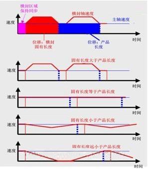 根据固有长度与产品长度之间的关系,横封轴转到同步角以外的角度时加减速控制要求入图6所示: