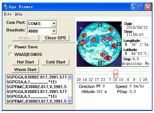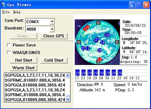 根据接收机保存的星历、历书和位置信息的状态不同,GPS信号强度不同,初次定位时间也不同,测试分为冷启动、温启动和热启动。
