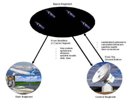 空间由空间飞行器(SV)或卫星组成,通常有24颗卫星和备用卫星。每颗卫星在20200公里高空12小时轨道上,每天以同样的地面轨迹运行。任何地点均可以看到5到12颗卫星。