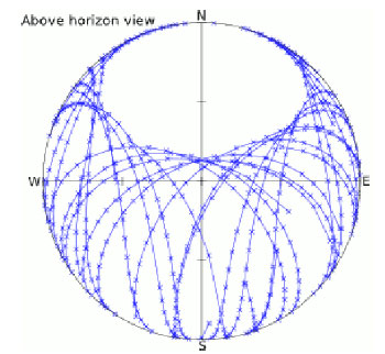 设置极点位置:GPS卫星的轨道产生了6个极点区域,这些区域上空卫星稀少,可视卫星的仰角低,定位精度差