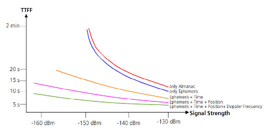 GPS接收机保存有最新的星历和历书信息,关机时间小于2小时,位置移动小于100米,则热启动时间通常会在0.5秒至20秒。