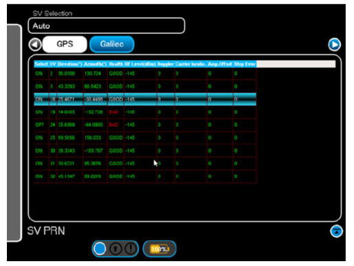 将GPSG-1000与接收机耦合,从SV列表中选择仰角接近90度的卫星,设置为ON,其它卫星设置为OFF。改变电平,使接收机C/N值达到特别设定值,此时电平为跟踪灵敏度。