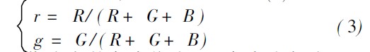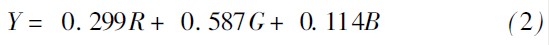 借鉴成功用于PAL(PhaseAlternatingLine,逐行倒相制)制式的电视系统中的YUV颜色模型(Y表示亮度,U和V是构成彩色的两个分量),将图像中采用的RGB颜色模型转换成式(2)的颜色模型,可以方便、快捷地计算出各像素点的相对亮度值。