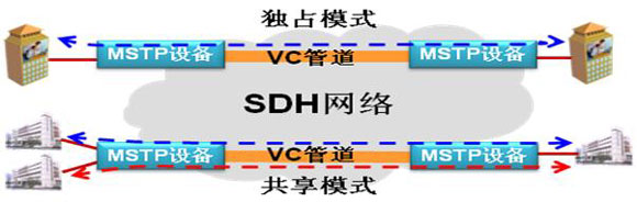 MSTP为大客户提供端到端的刚性管道,各自占用不同通道或时隙,物理上不受其他客户带宽变化影响。当然,MSTP也可以实现二层以太网桥等功能,也可向提出带宽共享的客户提供共享传输方式,通过自身成熟的QoS机制实现不同大客户之间流量管理。