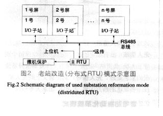 采用RS-485星形结构,构成分布式的RTU。其特点是不增加屏柜位置,无需改动原有二次回路,适用于老站改造。这类产品有GR-90,TG5-700和 MWY-C3A等分布式RTU等(见图2)。