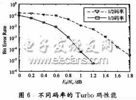 首先在Visual C++6.0上完成信息比特的产生,Turbo编码和AWGN信道加噪通过DSP的RTDX(Real-Time Data Exchange)技术,把加噪后的信息比特送到TMS320C6416的EVM板上,测试其误码率和完成译码所花费的周期。译码器的许多参数都可以改变,如编码长度,滑动窗大小,归一化门限,迭代次数等。这种灵活性便于满足不同系统的需要,可移植性好。本文系统仿真采用BPSK调制,在AWGN环境下传输,发送端Turbo编码采用约束长度为4,生成矩阵为(15,13)的分量译码器,交织算法为3GPP标准交织算法,译码算法为Max-Log- Map算法。
