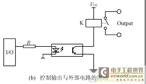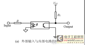 这种隔离方法是用光电耦合器把输入信号与内部电路隔离开来,或者是把内部输出信号与外部电路隔离开来,如图4(a)、(b)所示。