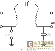在图1(a)中,隔离变压器不加屏蔽层,C12是一次绕组和二次绕组之间的分布电容,在共模电压u1C的作用下,二次绕组所耦合的共模噪声电压为u2C,C2E是二次侧的对地电容,则从图可知二次侧的共模噪声电压u2C为: