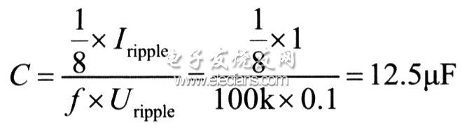 输出滤波器按照要求的纹波电流与纹波电压值来设计,纹波电流决定电感值,纹波电流与纹波电压共同决定电容值。