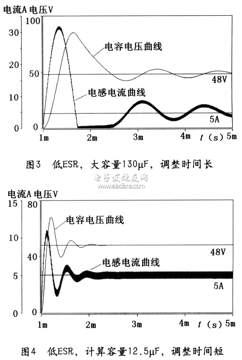 ①采用普通的铝电解电容,根据文献[3],此类电容在开关频率低于500kHz,且RoCo大于开关管的关断和导通时间的一半时,输出纹波仅由ESR(Ro)决定。