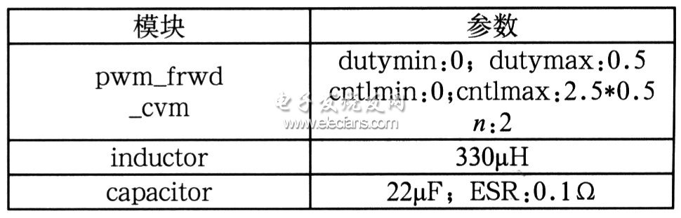 在SABER中建立平均模式双管正激的模型,如图5所示。