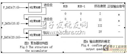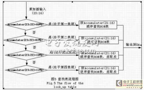 本系统将累加器的高8位作为查表表的地址,其中高两位用来确定象限。