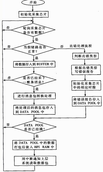 (2)对数据进行链路层协议解包后,重新打包茂特定的格式,交给上层系统(PC机)保存或进一步处理。对链路数据状态和采集的统计信息进行监测,定时生成报表,交给上层系统实时显示;