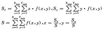 因为要给出目标点的位置,所以每张图像上的物体最终只能用1个点来表示,这个点就是物体的中心点,在图形学上称为图形的几何中心。确定物体的几何中心,只需扫描整张图像,寻找颜色是白色点,记录它们的横坐标和纵坐标,并做累加,同时累加白色点的个数,最后把累加得到的横坐标的值除以白色点个数后,得到的值就是物体中心点的横坐标数值,纵坐标也是如此。其算法表示如下: