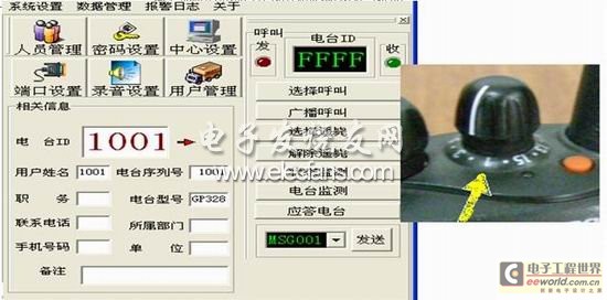kiss modem软件是摩托罗拉电台的专用管理软件,该软件通过串口与电台通信,通过读取电台的数据就可以知道电台当前的工作状态然后通过窗口显示相关信息。我们通过远程串口对电台下达指令,kiss modem会对指令做出响应,如图4所示。当我们把对讲机的信道切换按钮拨到1时,对讲机发出一个信号给电台,电台通过串口把信号传输给控制器,kiss modem软件把数据通过网络转发出去,另一个控制器经过网口转串口的数据传输,从而电台ID会显示1001,以此类推,目前最多可以设置14个电台6 结束语。