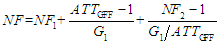 式中均为波长相关的参量(线性单位),前级和后级的增益、噪声指数分别为、和、,GFF的衰减为。由式(1)可以看出,越大、越低,整个放大器的NF就越低,而且在较大时,对整个放大器的NF起决定性作用。同时,较大的也有利于提高后级的PCE和抑制1060nm波段的ASE激射。此外,还必须考虑GFF的设计,通常整个放大器未加GFF时的GF越小,GFF的加工难度越低,应用效果也越好。依据以上原则设计的GFF的衰减谱如图2所示,并用该GFF制成GF-EYDCFA,其额定输入和输出总功率分别为6dBm和31dBm。图3为Aglient 86142B光谱分析仪的内插减元法测得的GF-EYDCFA的增益谱和NF谱。由测试数据可以看出,在1543-1565nm的工作波长范围内,放大器的GF<0.25dB, NF<5.5dB,增益平坦效果相当理想,并不比GF-EDFA差[2,3]。需要说明的是,测试中为了设备安全,放大器的输出端经1/8分波后取其中一路用于测试。由于分波器件的波长相关损耗(WDL)和分波损耗,GF和NF的测试数据一般会略偏大。不过瓦级的高功率光纤放大器在系统应用时,分波器件总是存在的,因此该测试方法也是合理的。