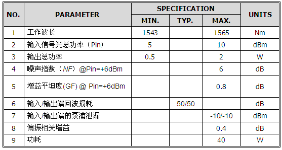 表1 光迅科技GF-EYDCFA产品的关键指标