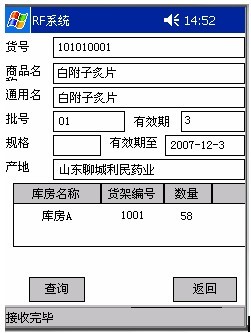 此模块为RF系统现有版本的必选配置模块,主要用于库房内商品信息的随机查询。