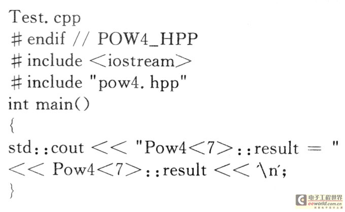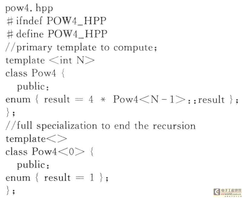 首先定义一个类模板,通过该类模板可实现在编译期间计算4的任意次方。如下所示: