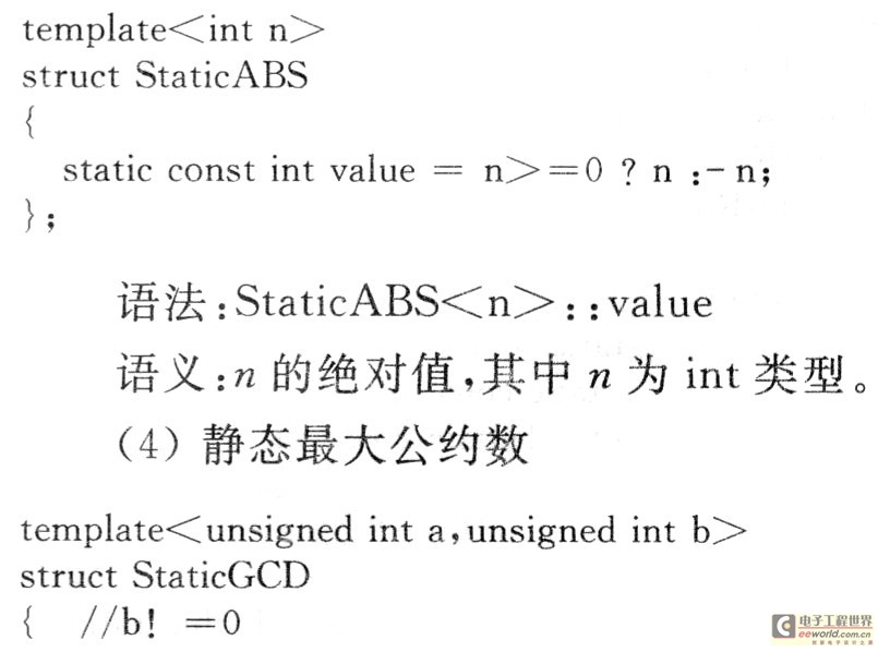 在C++程序设计语言中,模板元编程是实现代码重用的一种重要机制。下面首先对模板元编程技术进行介绍,然后给出TADA方法中需要使用的几个基本的模板元程序。
