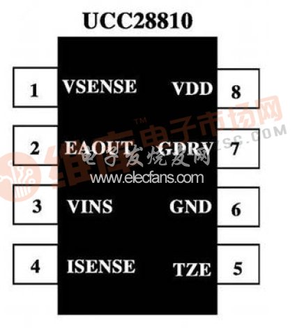 为了正确应用UCC28810,必须了解其各个引脚功能,见表1。