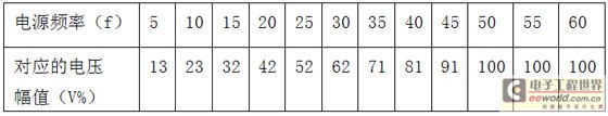加速子程序流程图如图9所示,控制参数包括调制波频率控制字和调制波幅值控制字,它们要通过计算求得,方法:首先根据电机的U/F曲线得到调制波的频率与幅值,然后通过公式计算出相应的控制字并制成表格,本文的程序设计中利用查表法实现两种控制参数的传送。调制波频率与幅值对比如表1所示。加速子程序流程图如图10所示: