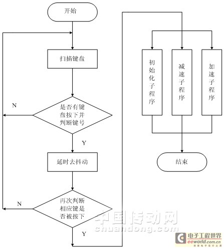 另外为了防止误操作增加了延时去抖动的再次判断键号环节。主程序流程图如图8所示: