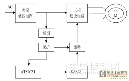 本文中,设计变频调速控制系统时,控制芯片采用单片机AT89C51,采用SA8281作为正弦波发生器,用IR2110芯片来驱动,另外考虑到系统的稳定性,设计了系统的保护电路,这样整个系统有成本低廉,功能齐全的特点,并具有较大的实用价值。目前,我国的变频调速市场逐渐增长,需求量日益广泛。因而,对于变频调速控制系统的研究具有重要的学术意义和应用价值。