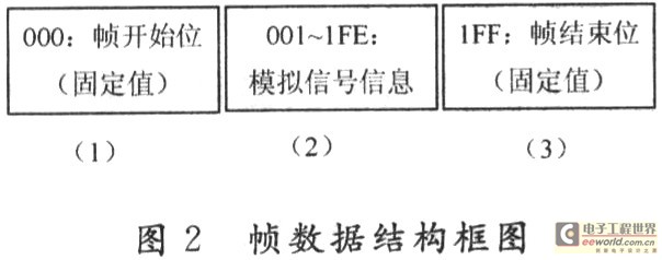 (2)数据帧控制。FPGA每秒向PC机发送100帧和每帧512 B的数据,将如此高速的数据进行准确无误的控制和传输是系统的技术难点之一。该方案中,每帧数据由3部分组成:如图2所示。