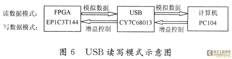 数据采集系统的数据方向是双向的。从计算机端来看,“读数据”即FPGA通过CY7C68013向计算机发送测井数据;“写数据”即计算机通过CY7C68013向FPGA发送测井命令。
