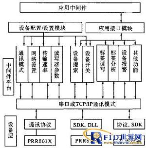RFID技术的基本工作原理是:标签进入磁场后,接收读写器发出的射频信号,凭借感应电流所获得的能量发送出存储在芯片中的产品信息(Passive Tag,无源标签或被动标签),或者主动发送某一频率的信号(Active Tag,有源标签或主动标签):读写器读取信息并解码后,送至中央信息系统进行有关数据处理。中间件是介于应用系统和系统软件之间的一类软件,它使用系统软件所提供的基础服务,衔接网络上应用系统的各个部分或不同的应用,以达到资源共享、功能共享的目的.在具体实现上,中间件是一个用API定义的软件层,具有强大的通信能力和良好的可扩展性。