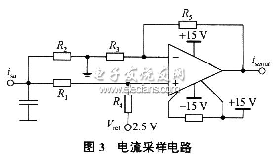 电机电流状态量的采集由霍尔电流传感器完成,其采样电路如图3所示,输入输出关系为: