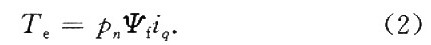 式中:γ为转子位置角,即转子d轴领先定子a相绕组中心线的电角度。然后分别对id和io进行独立控制,即可获得像直流电机一样良好的动态特性。表面凸出式转子结构的永磁同步电机d、q轴电感基本相同,因而其电磁转矩方程为: