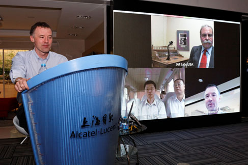 在今年的北京国际通信展上,上海贝尔将通过TD-LTE进行移动高清视频会议业务展示,会场视频会议将连接到上海规模试验网张江覆盖区域的演示车,上海贝尔与国内领先的高清视频会议厂商合作,借助TD-LTE的高速率、移动性和低时延,实现移动下的高清视频会议。